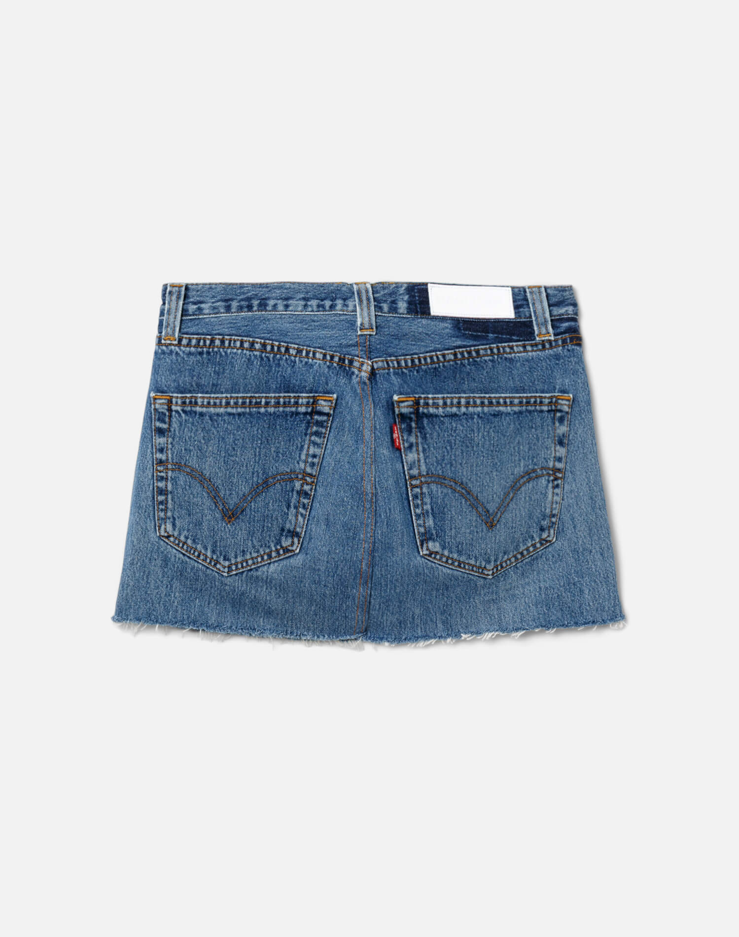 • The RE/DONE Levi's The Lynn is a classic mini denim skirt with a cut out fly with exposed button fly and ultra mini-length. Every skirt is completely one-of-a-kind and was reconstruction and imagined in Los Angeles